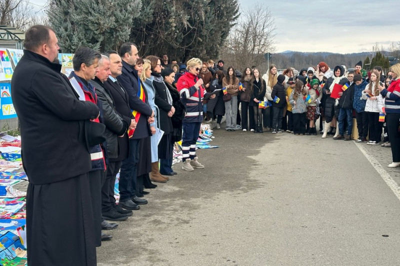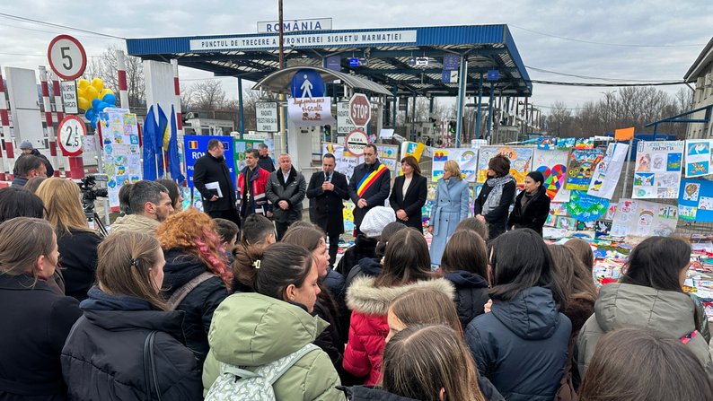 На кордон між Україною та Румунією прийшло 150 дітей із різних навчальних закладів міста Сигіт. За словами однієї із організаторок події, директорки центру інклюзивної освіти м. Сігет Ліліани Вирсти, більшість цих дітей допомагали волонтерити на кордоні між Сигітом та Солотвином у перші дні повномасштабної війни.