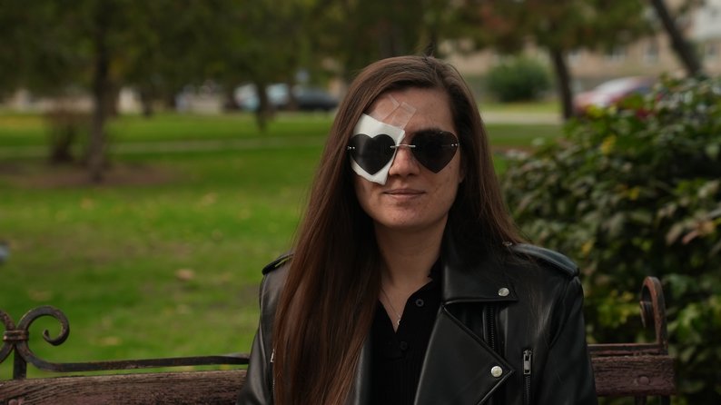 "Одна операція була під загальною анестезію, мені діставали з правого ока уламок на все очне яблуко, тобто він був дуже великий — 2 сантиметри на 1 сантиметр. А в ліве око робили з місцевою анестезією і я можу сказати, що це не так категорично боляче, але моментами було аж "Ай-ай-ай, куди мені дітися”, дуже-дуже було неприємно. Але нічого страшного, фізичний біль не такий болючий, як те, що ти не бачиш", — каже жінка.