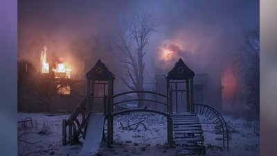 Пожежа у будинку родини Катерини Романенко у Бахмуті. Особистий архів Катерини Романенко"Ми в березні виїхали, думали, що якось це на час, поки якісь такі гострі бойові дії відбуваються. І ми виїхали до Дніпра, там перебути, до рідні чоловіка. Ми там були, чекали десь півроку. І в якийсь момент, ти ж все одно новини постійно гортаєш, дивишся, всі групи. І в якийсь момент мені скидають фотографію мого палаючого будинку, де наша була квартира. Оце фото палаючого будинку, воно було такою точкою наступного твого життя, ривка, що треба далі щось думати, прилаштовувати своє життя на новий етап".