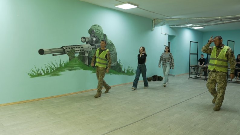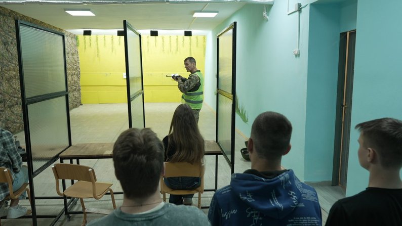 "Сюди входить ознайомлення зі зброєю та практичні заняття — це стрільба з пневматичних гвинтівок, "лазертаг", відпрацьовуємо тактику, команда на команду граємо. Вивчаємо будову гранати, мін. Вивчаємо смугу перешкод, як проходити", — сказав в Олександр Гребінь.