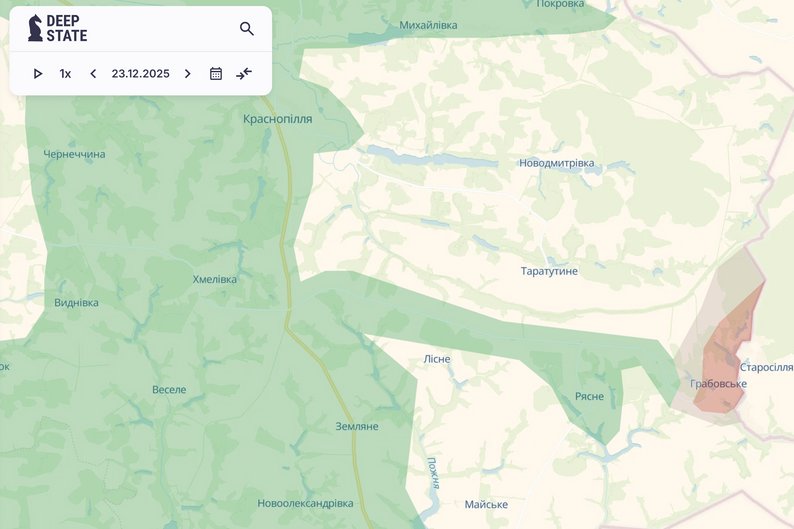 З 20 грудня територія біля Грабовського та сусіднього Рясного була у "сірій" зоні, а вже 23 грудня — Грабовське позначене на мапі DeepState окупованим.