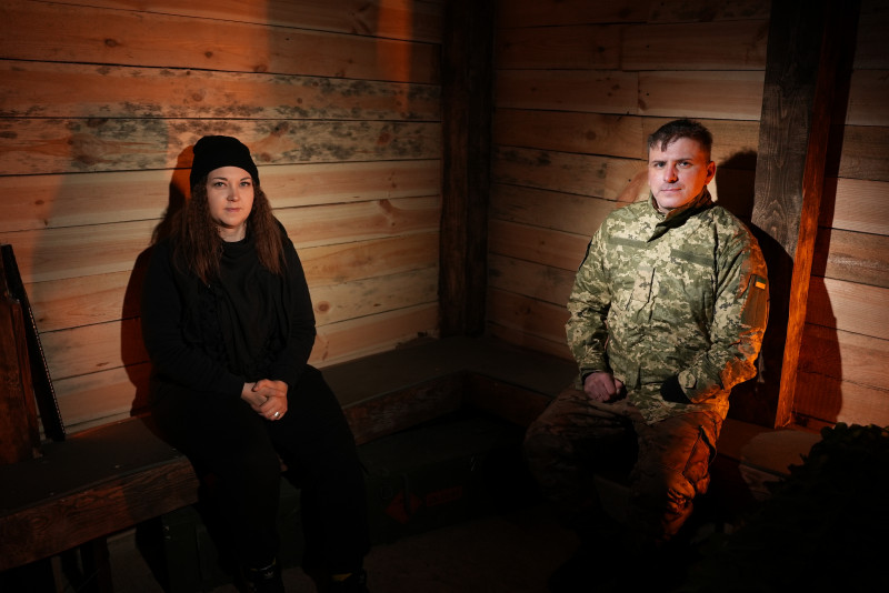 Командир взводу “Вампір-Перун” на псевдо Укроп поруч із журналісткою “Суспільне Миколаїв” Валентиною Гуровою. Суспільне Миколаїв/Юлія Філімон