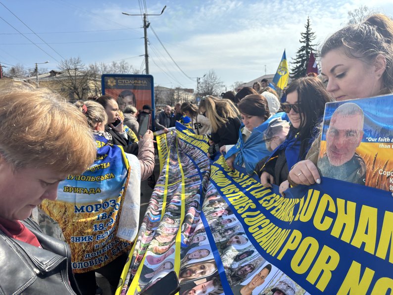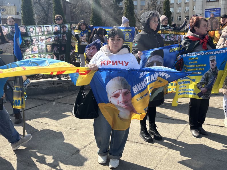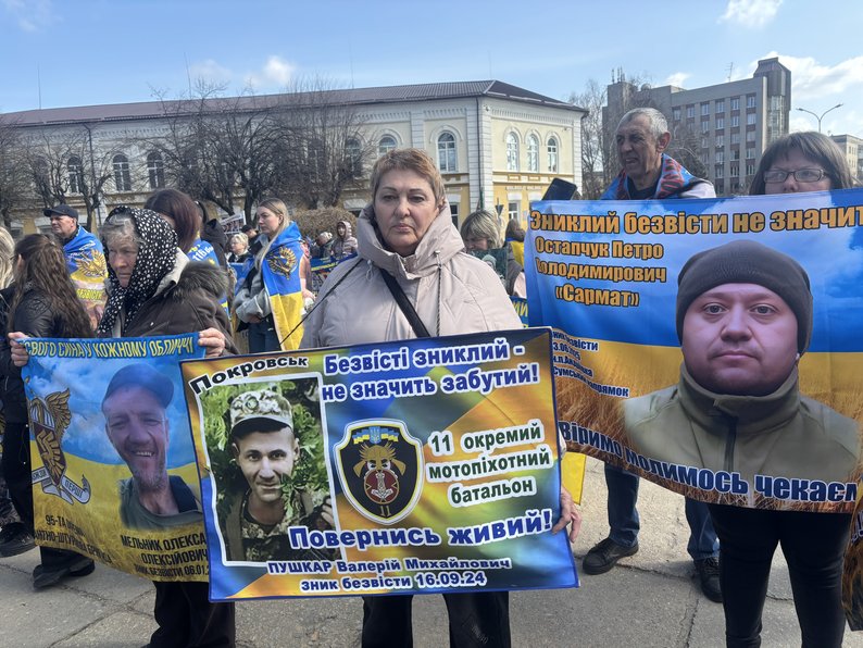 "Сьогодні ми приїхали на масштабну акцію в Житомир з Південноукраїнська, тому що для нас це важливо. Ми чекаємо наших рідних вдома, чекаємо, віримо, що зможемо їх обійняти, побачити їх живими. Ми хочемо, щоб нас почула країна, щоб нас почула влада і посприяла поверненню наших рідних додому".