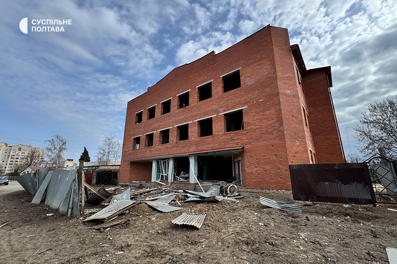 Пошкоджена будівля через обстріл РФ у ніч на 24 березня в Полтаві. Суспільне Полтава