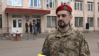 "Мені приємно, що мій син навчається в цій школі, якій присвоїли звання 44-ої окремої артилерійської бригади імені Данила Апостола, в якій я несу службу. Коли син подзвонив зі школи, що мене запросили, щоб підняти прапор, я був дуже гордий за це", — сказав Петро Федів.