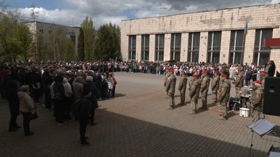 На шкільному подвір’ї тривають урочистості. Суспільне Тернопіль