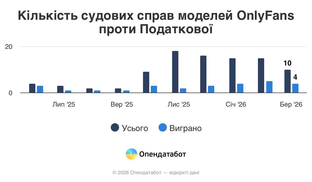 За даними аналітики Opendatabot, лише за минулий рік в Україні відбулося щонайменше 94 судові справи, пов’язані з донарахуванням податків авторам контенту. І майже третина з них завершилась перемогою позивачів.