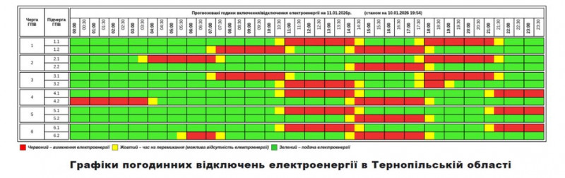 Графік відключення світла на Тернопільщині 11 січня. Суспільне Тернопіль