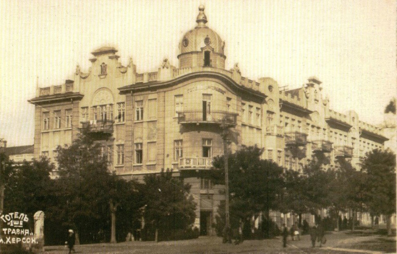 За його словами, готель збудували у 1915 році. Він стояв на головній вулиці того часу — Соборній, поруч із Соборною площею та найважливішими будівлями Херсона: міською думою, окружним судом — там зараз краєзнавчий музей, і міським клубом — нині міський палац культури суднобудівників.