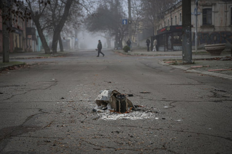 Російський снаряд посеред дороги у середмісті Херсоні, грудень 2025 року. Суспільне Херсон/Олександр Корняков