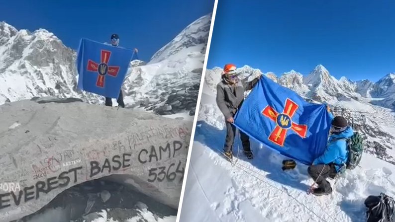 На вершині він розгорнув стяг Повітряних Сил України з іменами загиблих льотчиків — від 2014 року до сьогодні.