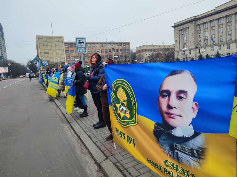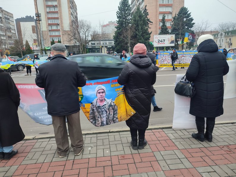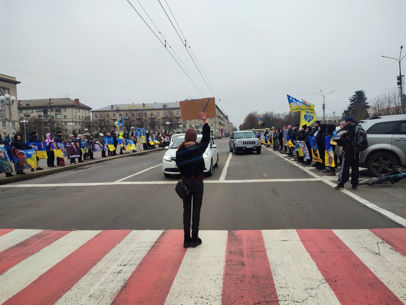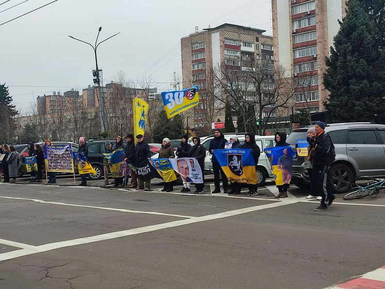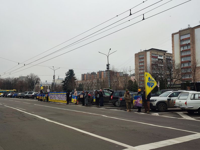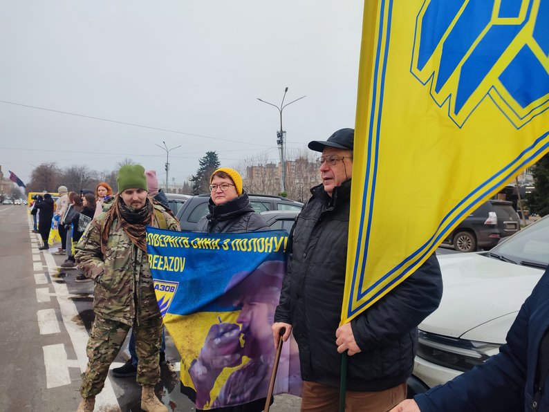 Рідні, друзі захисників, волонтери, військові та небайдужі містяни зібралися на Соборній площі з прапорами й плакатами. Водіїв, які проїжджали повз, закликали посигналити та підтримати родини воїнів.