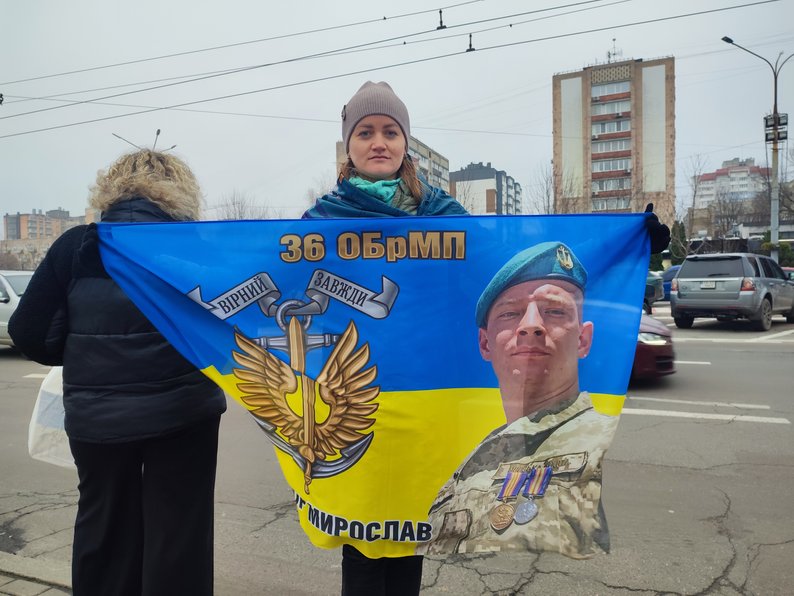 "Він у полоні 43 місяці, засуджений до довічного позбавлення волі. Ми приходимо сюди щонеділі, щоб підтримати наших захисників і один одного, нагадати суспільству наскільки це важлива тема. Це важливо для рідних, які таким чином бачать, що їх підтримують і не забувають. А ще — для хлопців, які повертаються з полону. Вони потім так само приходять сюди, підтримують і стоять разом із нами. З наших морпіхів обміняли трьох і вони тепер теж тут із нами".