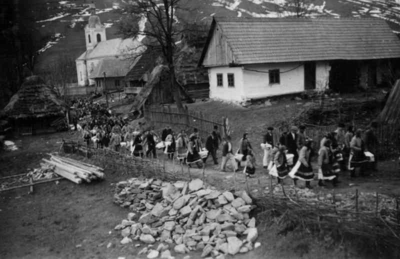 Люди йдуть з церкви додому після освячення великодніх кошиків. Березнянщина, Закарпатська область. Фото з архіву Віктора Ковача