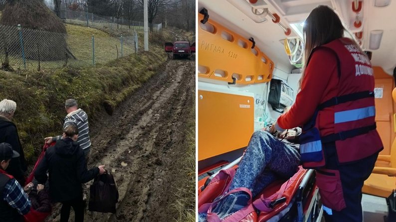 У Рахові медики швидкої врятували 90-річну жінку, що була в критичному стані. Через розмиту дорогу, якою не проїде авто, їм довелося 20 хвилин іти пішки з обладнанням в руках, щоб дістатися до місця виклику.