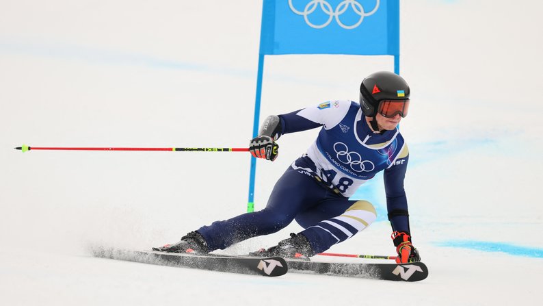 Дмитро Шеп’юк під час слалом на Олімпійських іграх-2026. REUTERS/Angelika Warmuth