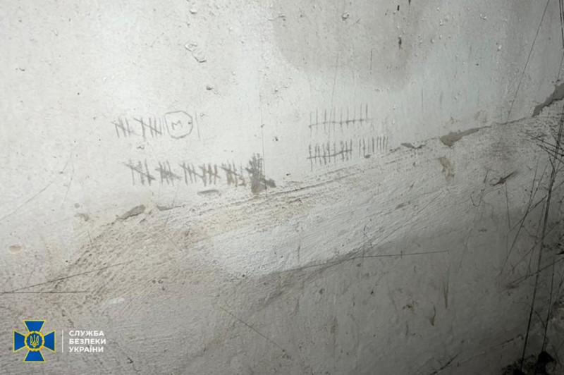 Насічки на стіні в одній з катівень у Херсоні. Служба безпеки України/Telegram