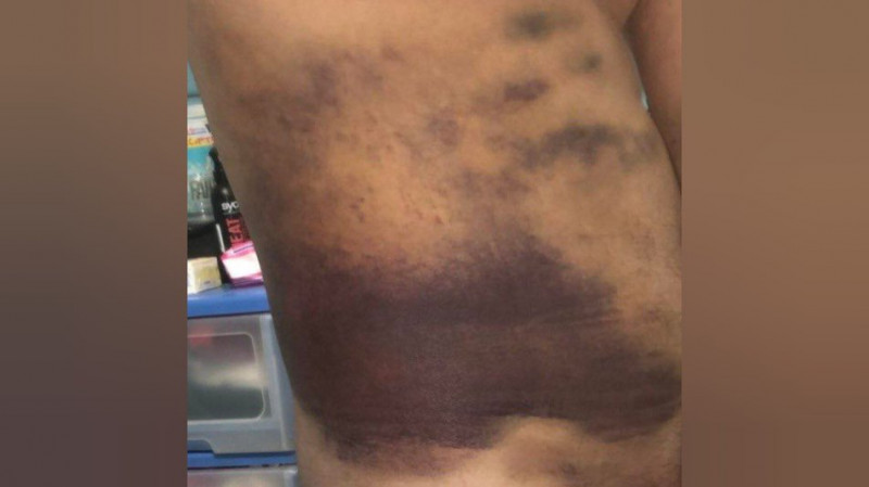 Синці на тілі Олега Самарського після, того як його били військові РФ. Фото надав Олег Самарський