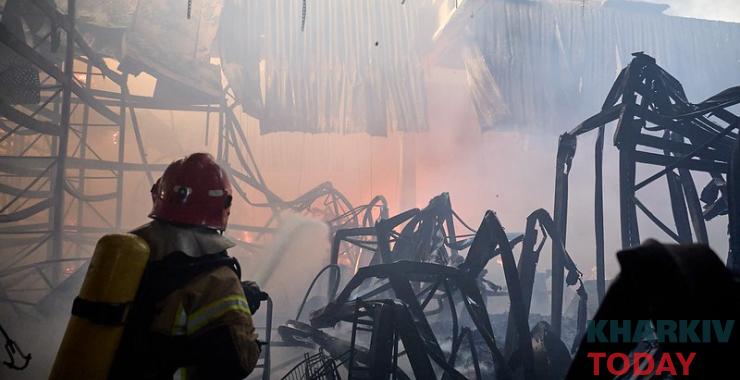 Площа пожежі, що сталася внаслідок ворожих авіаударів по будівельному гіпермаркету, склала понад 13 тисяч кв. м.