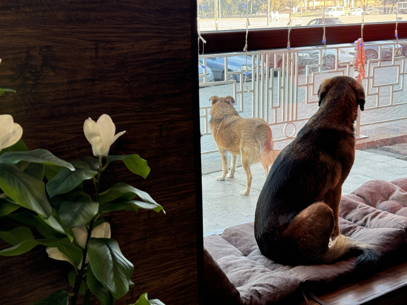 Собаки гріються у миколаївській кав’ярні. Суспільне Миколаїв/Валентина Гурова