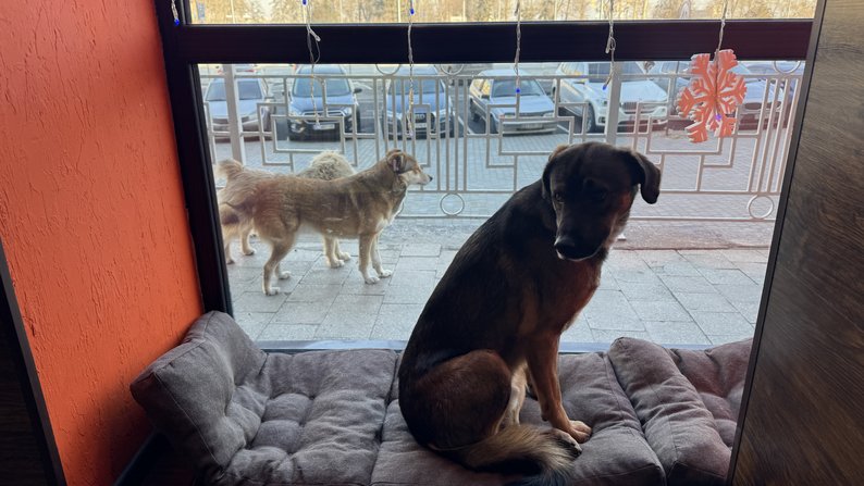 Лис, Раф та Ера — ці троє песиків вже не першу зиму гріються у кавʼярні Романа. Підприємець розповідає, для тварин тут обладнали лежанки, їх також годують, а за потреби навіть відвозять до ветеринара лікують.