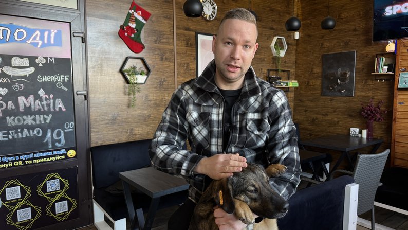 Власник кав’ярні Роман гладить собаку. Суспільне Миколаїв/Валентина Гурова