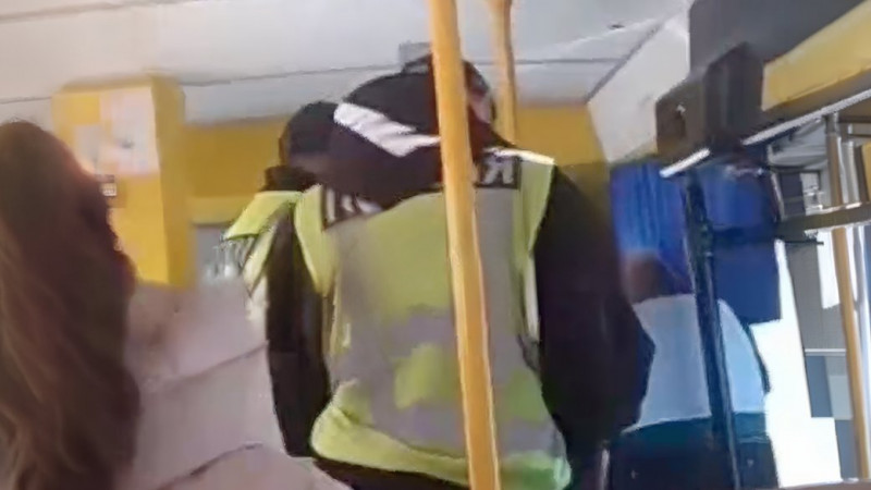 Поліцейські в автобусі затримують чоловіка, який супроводжував дітей в Козельці на Чернігівщині. “Труха Чернігів”