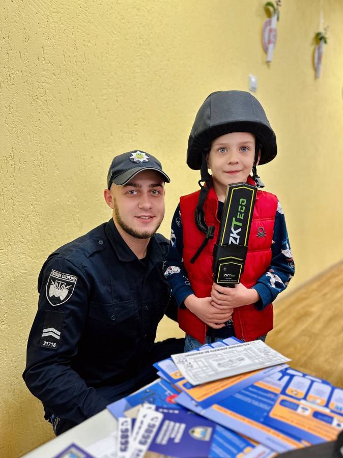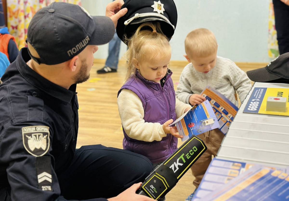 Поліцейські охорони пояснили, до кого звертатися по допомогу, коли поруч немає дорослих, та наголосили, чому не можна спілкуватися з незнайомцями. Малюкам розповіли про “терміновий виклик поліції”, а кульмінацією стала можливість оглянути службовий автомобіль та спецзасоби. Діти із захопленням приміряли амуніцію та на мить відчули себе справжніми захисниками порядку.