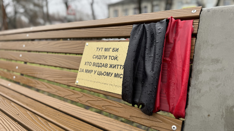 Лавочка із табличкою про військовополонених та безвісти зниклих. Суспільне Миколаїв/Роман Волинський