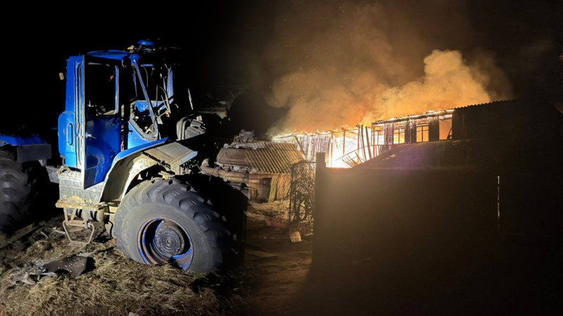 Пошкоджений трактор та пожежа будівлі у Сновській громаді на Чернігівщині 18 березня 2026 року. Павло Мірошниченко