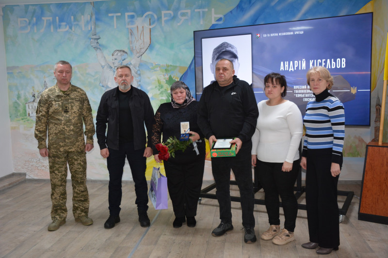 - стрільця-санітара Андрія Кісельова, 1995 року народження, жителя села Кам’яниця Тараканівської громади. З січня 2023 року проходив службу у 95 окремій десантно-штурмовій Поліській бригаді. У березні того ж року отримав поранення під час ворожого артилерійського обстрілу в районі населеного пункту Кремінна. Після лікування, у червні 2024 року повернувся до строю у складі 150 окремої механізованої бригади, обіймаючи посаду водія-електрика роти безпілотних авіаційних комплексів. 6 серпня 2024 року боєць загинув під час виконання бойового завдання на Донеччині. Нагороду вручили батькам військового.