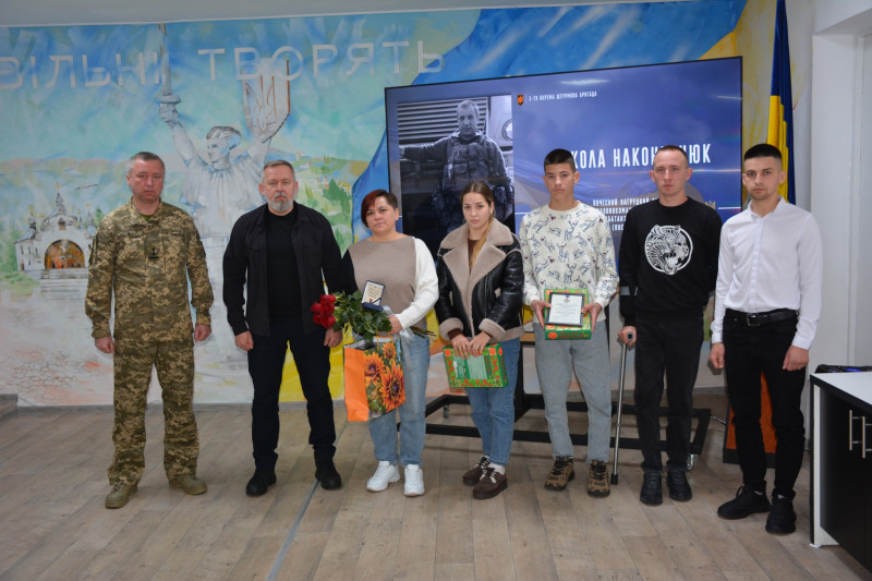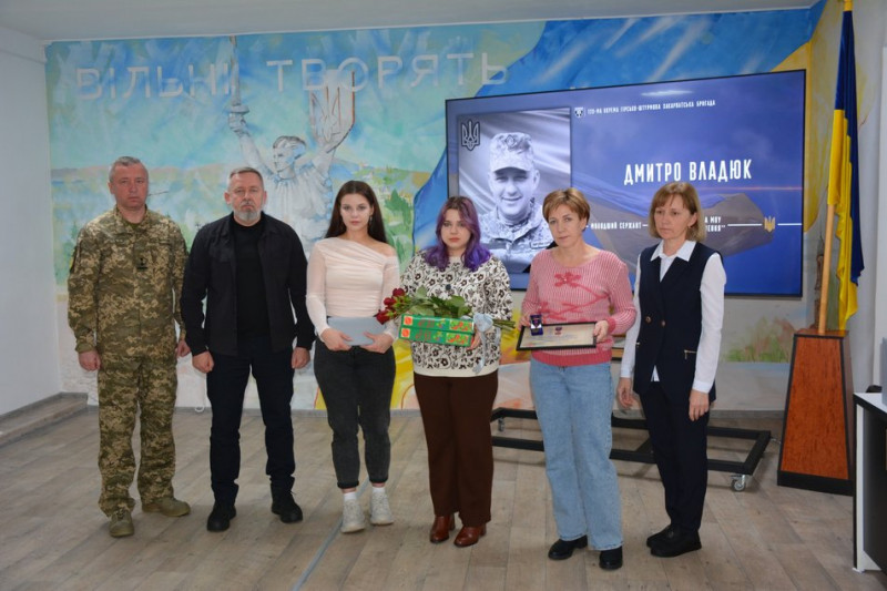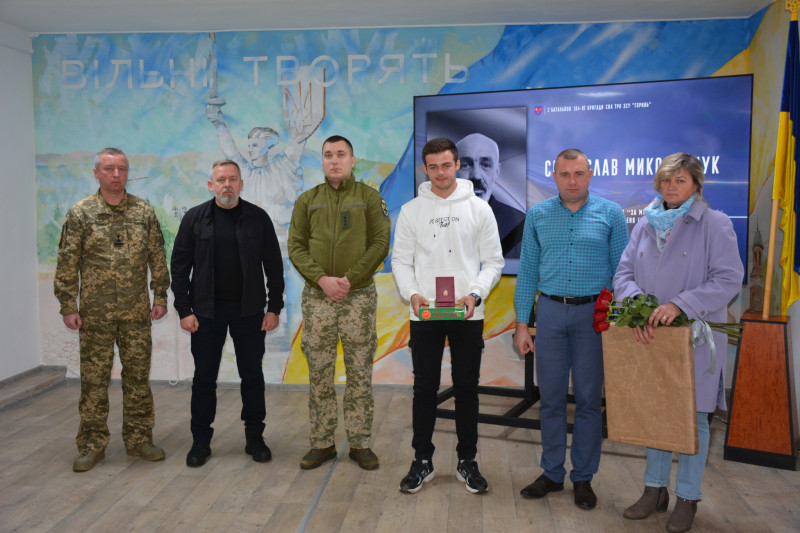 - старшого стрільця-оператора Руслана Грицюка, 1970 року народження, який проживав у селі Судобичі Тараканівської громади. У грудні 1988 року був призваний на військову службу. Після початку конфлікту навколо Нагірного Карабаху брав участь у бойових діях у місті Гянджа (Азербайджан), де отримав поранення. Повернувшись до мирного життя, створив сім’ю, виховував дітей і працював. З початку повномасштабного вторгнення служив у 104 окремій бригаді Сил територіальної оборони ЗСУ "Горинь". 22 лютого 2025 року він загинув під час виконання бойового завдання на Донеччині. Нагороду вручили дружині, невістці та онучці військового.