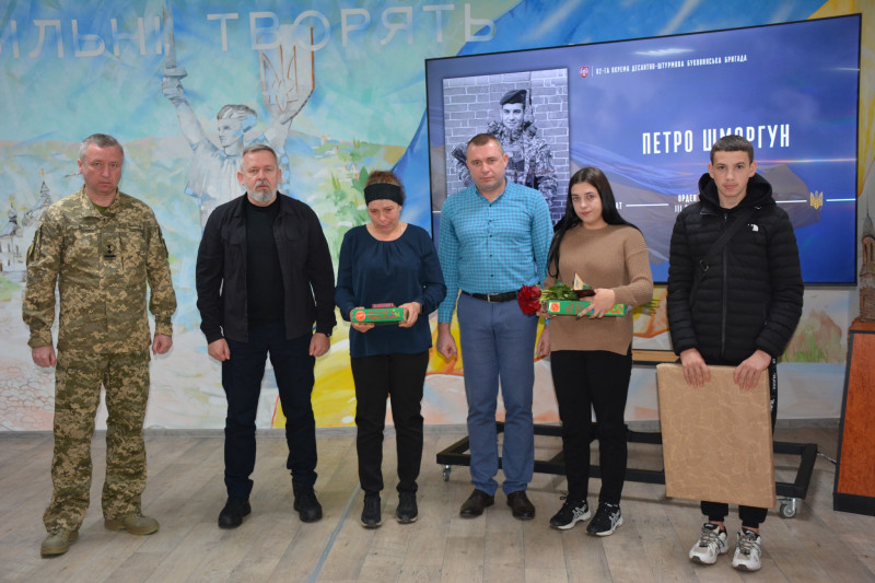 - солдата Петра Шморгуна, 1999 року народження, який проживав у селі Війниця Бокіймівської громади. З початком повномасштабного вторгнення служив у 82 окремій десантно-штурмовій бригаді. 18 березня 2025 року військовий загинув під час виконання бойового завдання на Сумщині. Вручили нагороду мамі, сестрі та брату військовослужбовця.
