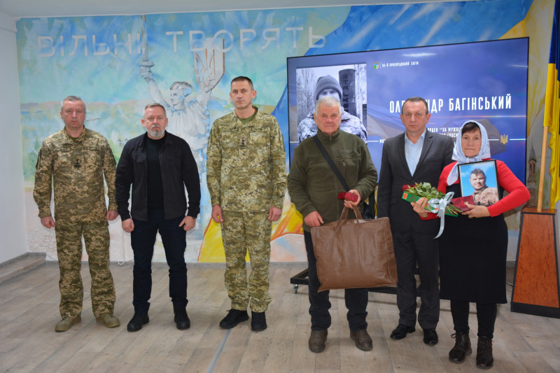 - інспектора прикордонної служби Олександра Багінського, 1982 року народження, з села Іваннє Привільненської громади. Чоловік розпочав свій військовий шлях у 2015 році, зокрема брав участь у бойових діях у Вовчанську. З травня 2022 року військовий долучився до 94 прикордонного загону. Воїн загинув 21 січня 2025 року під час виконання бойового завдання на Курщині. Орден отримали батьки загиблого бійця.
