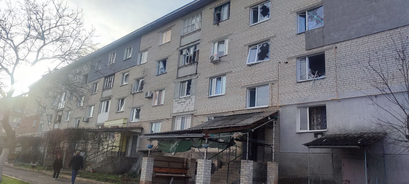 Пошкоджена багатоповерхівка внаслідок авіаудару по Запорічному Запорізької області, 29 березня 2026 року. Особистий архів Олександра Панченка