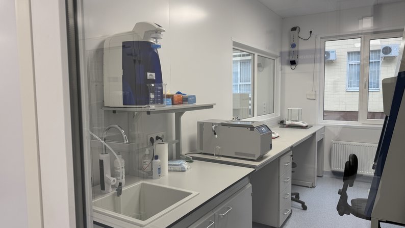 "Тут у нас кімната для виділення ДНК зі слідів та кісток, там розташоване обладнання, автоматичні системи для виділення ДНК, за один раз можна виділяти 12 об’єктів.Тут у нас кімната для виділення ДНК зі зразків – це букальний епітелій (слина – ред.) або кров родичів, підозрюваних, також зниклих безвісти, якщо прижиттєвий зразок було відібрано", — розповів Артем Почерняєв.