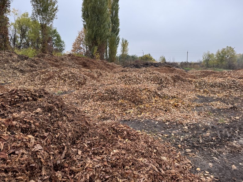 Скомпостоване листя формують в кагати. Суспільне Полтава
