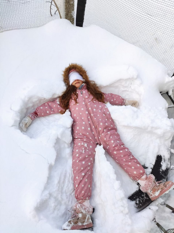 Дитина робить снігового янгола. Суспільне Тернопіль