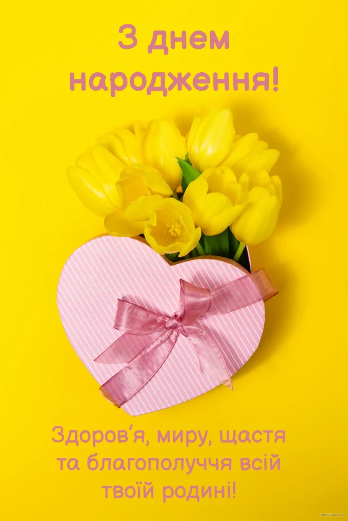 З днем народження! Бажаю Вам затишного дому, квітучого саду, прекрасного здоров’я! Хай будуть досягнуті всі великі життєві цілі! Хай гріють Вас справжнє кохання та міцна дружба! Хай кохана людина буде надійною опорою у житті та джерелом натхнення!