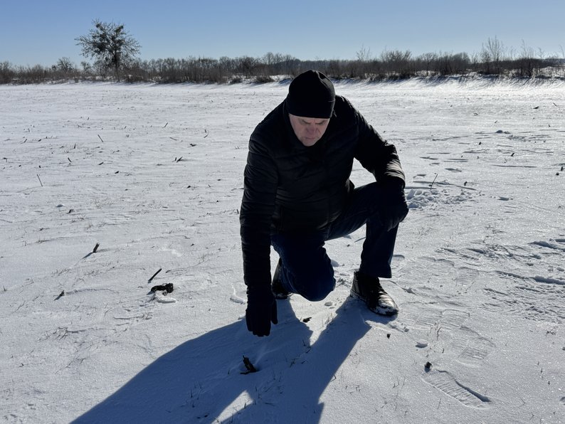 "Пшенички сантиметрів шість, вона трошки виглядає з-під снігу. Пшениця примерзла дуже. Пшениця йшла в зиму дуже гарна, гарно зійшла, гарно покущилася, морозець, сніжок був прикидав, все було дуже гарно. Потім серед зими була відлига, пішов дощ, зробили дуже велику кірку на пшениці", — зауважив підприємець Михайло Бабич.