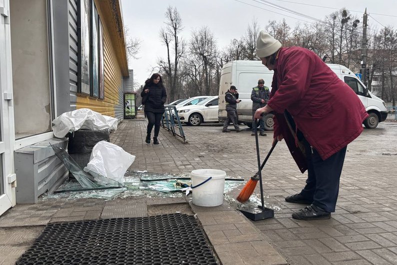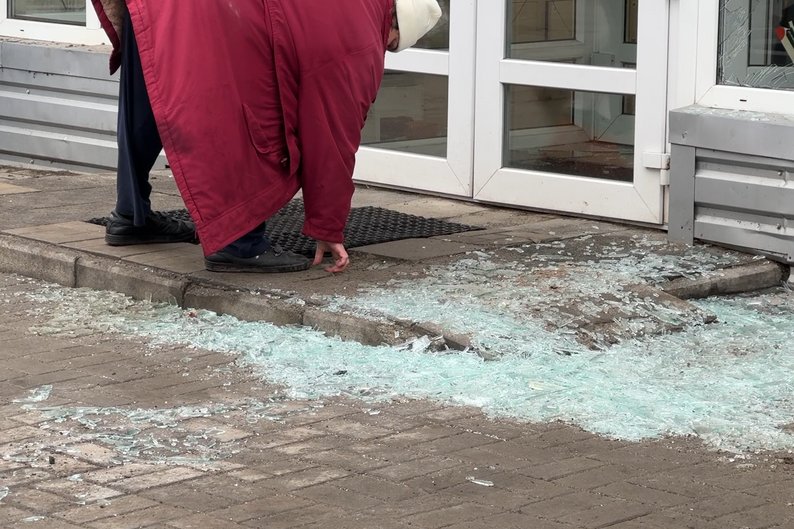 У момент влучання по адмінбудівлі на вході в сусідній супермаркет стояв відвідувач, розповів Суспільному управитель магазином. Чоловік встиг зайти всередину, він не поранений. У супермаркеті вибиті вікна.