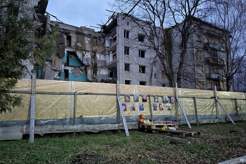Меморіал загиблим у Глухові через російську атаку 18 листопада 2024 року. Суспільне Суми