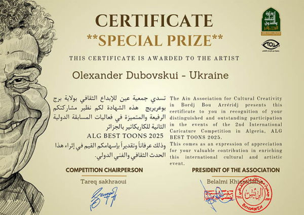 – Із Алжиру повідомили про такий приз. Але що там — невідомо. Організатори бояться надсилати приз через військові дії — хоча наша пошта працює добре, незважаючи ні на що. Тема міжнародного конкурсу – штучний інтелект. Ну я і надіслав кілька своїх робіт. Напевно, ось за ці малюнки і получив нагороду, – розповів «Днепру вечернему» художник.