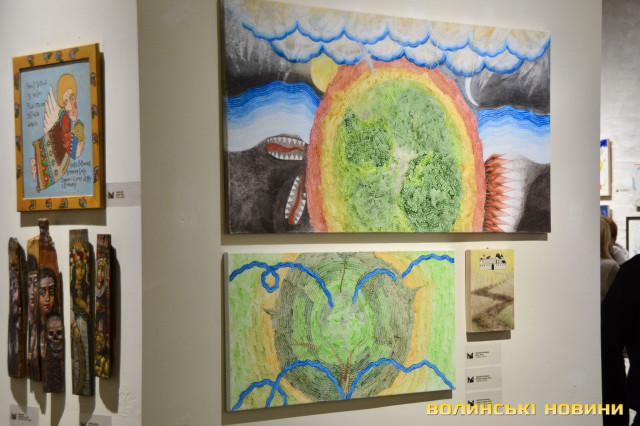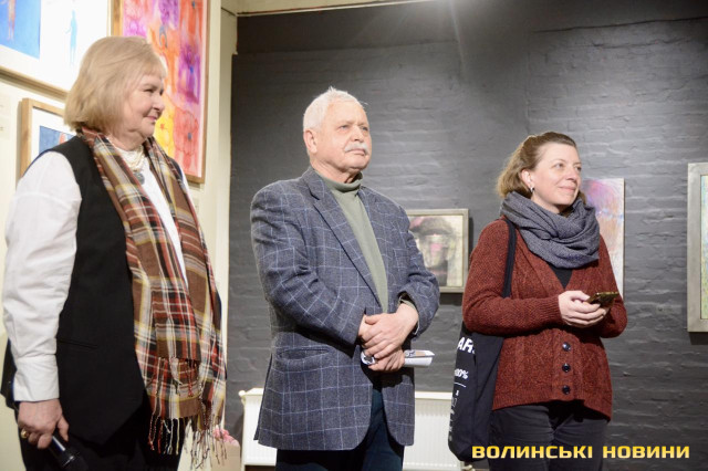 Як він інформував, на виставці в Луцьку представлені твори трьох митців, які зараз захищають нас на фронті. Це Святослав Владика, Олександр Бриндіков і Роман Барабах.