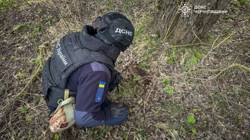 Сапер ДСНС Чернігівщини поряд із снарядом Другої світової війни. Аварійно-рятувальний загін спецпризначення ДСНС Чернігівщини
