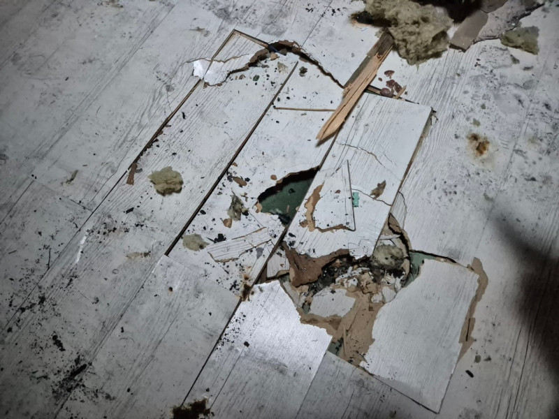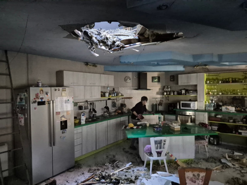 Внаслідок атаки пошкоджено будинок родичів Анни. Жінка приїхала, аби допомогти їм. Уламок дрону пробив стелю.