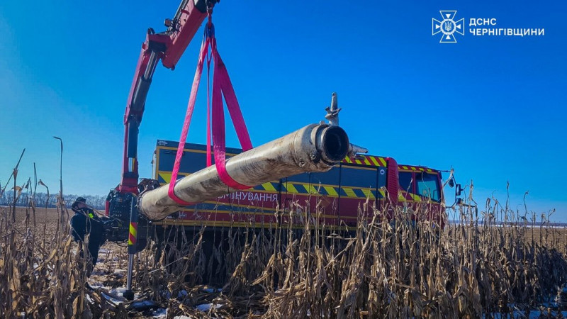 У полі на території Ніжинського району, що на Чернігівщині, піротехніки ДСНС виявили та вилучили частину російської ракети.