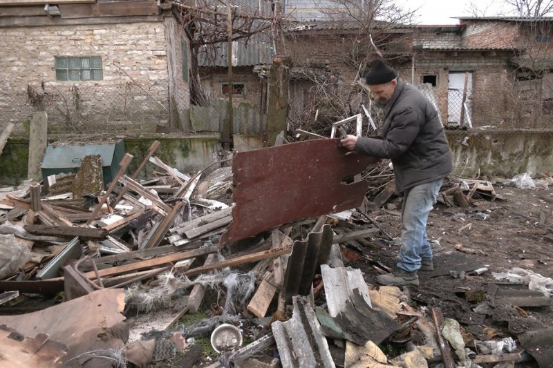 75-річний пан Микола розбирав руїни своєї літньої кухні. Зранку 23 грудня, під час атаки армії РФ на Рівненщину вибуховою хвилею пошкодило двоповерховий будинок, у якому живе чоловік, а також господарські будівлі поруч.