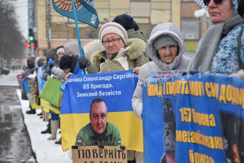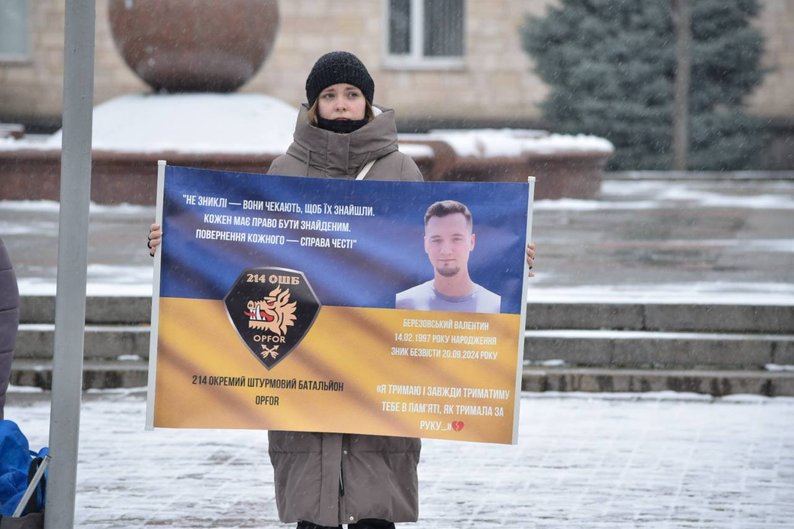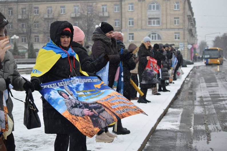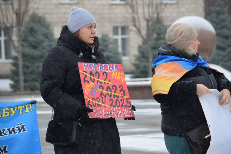 "Ми стоїмо за нашого сина Владислава, який потрапив у полон. Спочатку зник безвісти 22 грудня 2024 року. Потім ми його знайшли в телеграм-каналі й дізнались, що він потрапив у полон. І стоїмо за нього, приїжджаємо зі Сміли. Хоч зараз у нас у Смілі є така акція, але ми починали тут, стоїмо і далі за сина".