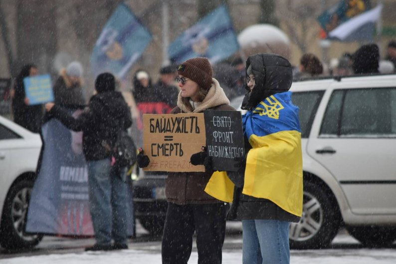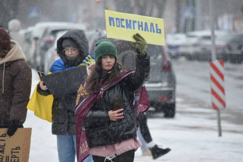 Рідні, друзі захисників, волонтери, військові та небайдужі містяни зібралися на Соборній площі з прапорами й плакатами. Водіїв, які проїжджали повз, закликали посигналити та підтримати родини воїнів.